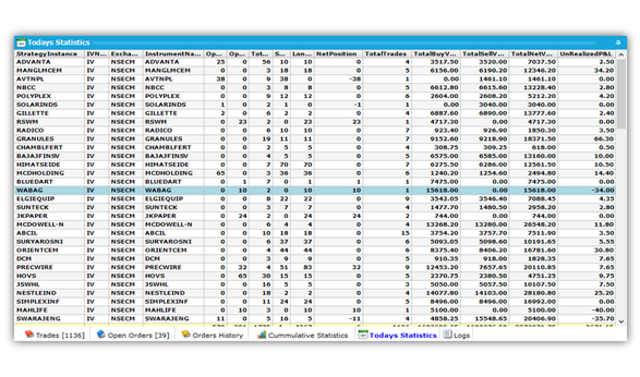 BlitzTrader OMS and Risk management modules is an in-built systems which provides comprehensive access of trade positions, open profit and loss, other statistics to access and control the financial state of the system at strategy, user and portfolio level. Risk management component is based on comprehensive quantitative and financial limits, which allows users to set trading limits, validated before sending each order to the trading systems.